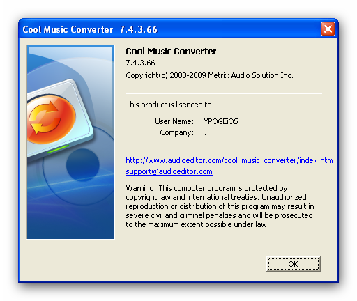 Cool Music Converter -программа, которая позволяет конвертировать аудио файлы между WAV, OGG Vorbis, MP3, MP2, Microsoft ADPCM, WMA, VOX, AAC, M4A, AMR и в другие известные форматы в соответствии с вашими пожеланиями.Программа легко интегрируется в оболочку Windows и всегда доступна. Она имеет высокое качество 32 bit преобразования, делает качественные и наиболее распространенные аудио форматы. Просто нажав кнопку, вы сможете конвертировать аудио менее чем за минуту без какой-либо потери качества звука.