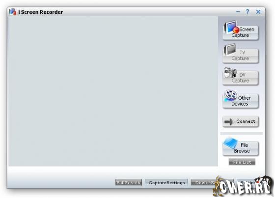 i Screen Recorder – мощный инструмент, который позволит Вам легко захватывать и делать аннотации к чему угодно – в Вашем распоряжении все, что отображается на экране компьютера: окна, объекты, меню, полноэкранный режим, промотка вебстраниц и так далее. Изображения сохраняются в форматах BMP или JPG. Кроме того, программа позволит Вам делать захват видео или изображений с DV, TV-тюнера или других устройств. Пользовательский интерфейс утилиты был основан на двух китах: внешняя привлекательность и быстрый доступ ко всему функционалу программы. Программа имеет три основные кнопки управления, которые находятся в основном окне приложения.