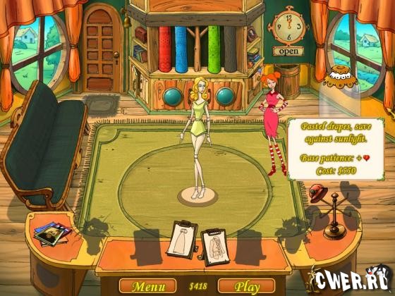 В этой игре вам предстоит помочь Венди заработать деньги на дорогу. Чем быстрее вы будете шить костюмы и платья, которые заказывают посетители, тем больше клиентов смогут к вам прийти, и тем больше чаевых они вам оставят. На заработанные деньги можно благоустроить ателье, покупая новые занавески, обивку дивана, заказывая новые виды тканей и модели костюмов.