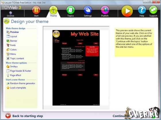 TOWeb от Lauyan Software – программа, предназначенная для тех, кто хотел бы создать собственный сайт, но не хочет связываться с его программированием или не хочет обращаться к специализированным студиям. При помощи данной программы можно создать внешний вид своего сайта, поместить не него изображения и другие файлы, добавить текст – все это делается при помощи несложного постраничного интерфейса программы.