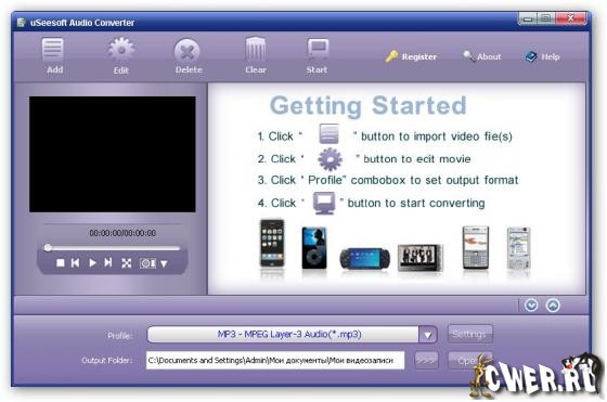 uSeesoft Audio Converter - это простая в использовании программа, которая может конвертировать аудио файлы с очень большой скоростью и превосходным качеством. Она может конвертировать все популярные аудио форматы включая MP3, MP2, AAC, AC3, WAV, MID, MIDI, WMA, M4A, RA, RAM, и переконвертировать MP3 to WAV, AAC to AC3, WMA to MP3 и т.д. uSeesoft Audio Converter так же может редактировать аудио файлы, делать обрезку или разбивание файла на несколько частей. Возможность извлекать аудио из видио файлов таких как:MPG, MPEG, MPEG2, MP4, M4V, RM, RMVB, WMV, ASF, MKV, MPV, AVI, 3GP, 3G2, FLV, MPV, MOD, TOD и конвертировать один видео файл аудио MP4 > MP3, FLV > WMA, MKV > AAC и т.д.