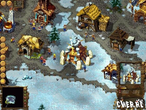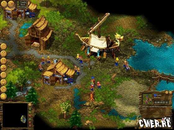 Например, чтобы стать мельником викинг сначала должен стать опытным фермером. Этого можно добиться двумя путями: либо заставить викинга выполнять эту работу, в результате чего он приобретет данную профессию (это долго), либо послать его в школу, где его намного быстрее научат ремеслу. Архитектура также развивается постепенно. По ходу игры вам станут доступны храмы, оружейные и плотницкие мастерские, и многие другие здания.