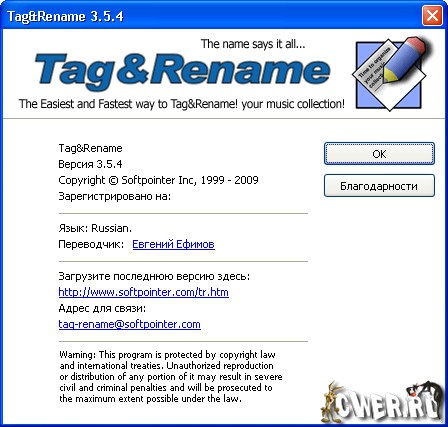 Скачать программу Tag&Rename 3.5.4 (5,3 МБ):