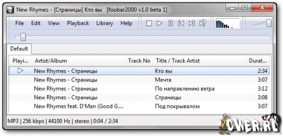 foobar2000 - аудиоплеер, основные черты которого качественный звук, широкие возможности настройки, спартанский интерфейс и низкие системные требования. Foobar проигрывает файлы форматов MP1, MP2, MP3, MP4, MPC, AAC, Ogg Vorbis, FLAC / Ogg FLAC, WavPack, WAV, AIFF, AU, SND, CDDA, WMA (lheubt форматы могут поддерживаться при установке соответствующих плагинов). Имеется полная поддержка unicode. В программе использован новый формат плейлистов (m3u8) и поддерживается чтение APEv2-тэгов из файлов MP3 (id3v2 не поддерживается).
