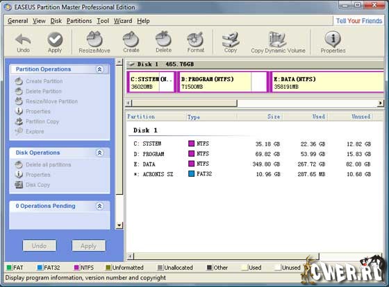 EASEUS Partition Master это удобный и понятный инструмент для работы с разделами жесткого диска и оптимизации разделов системы. Кроме того, программа позволяет создать загрузочный CD/DVD для восстановления системы после сбоя.