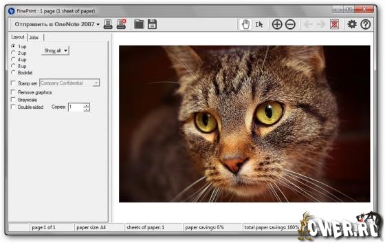FinePrint - многофункциональный драйвер для принтеров, значительно расширяющий возможности любых принтеров при печати документов: предпросмотр, печать нескольких страниц на одном листе, распечатка брошюр, автовставка заголовка и "подвала", создание фирменных бланков, подложек, рамочек и многое другое. FinePrint работает со всеми моделями принтеров, являясь, по сути, многофункциональным универсальным драйвером принтера с удобной графической оболочкой для управления им. Еще одна полезная возможность - допустимость использования нескольких преднастроенных виртуальных принтеров. К примеру, один будет автоматически распечатывать брошюры, а другой - печатать текст на фирменном бланке. При использовании FinePrint значительно уменьшаются затраты на печать, в то же время общая работа принтера усиливается.
