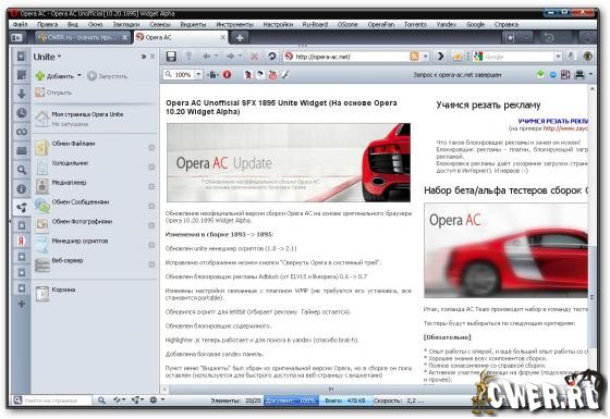 Скачать программу Opera AC Unofficial SFX 1895 Unite Widget (14,81 МБ):