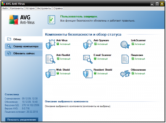 AVG Anti-Virus включает в себя следующие модули: