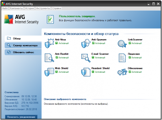 Скачать программу AVG Internet Security 9.0.716.1803 (110,13 МБ):