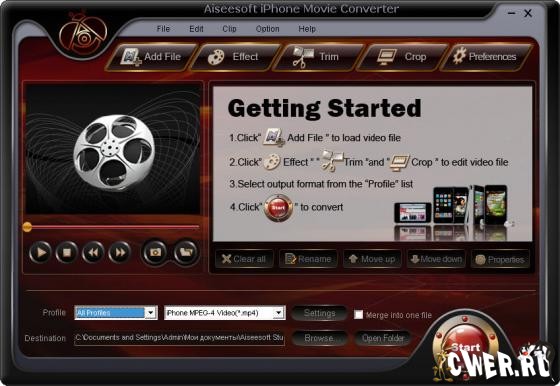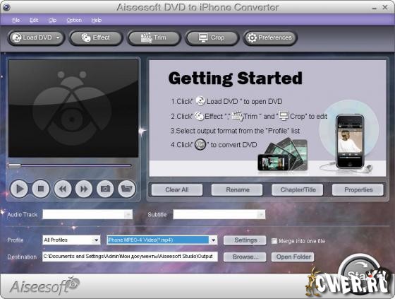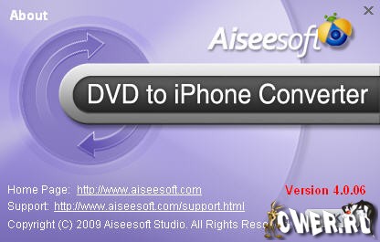 Aiseesoft DVD to iPhone Converter - профессиональное и мощное программное приложение, разработанное, для быстрого и легкого конвертирования Ваших любимых кинофильмов из DVD в iPhone совместимый формат, видео: MP4, MOV, H.264 и аудио MP3, M4A, с высокой скоростью и превосходным качеством итогового файла.