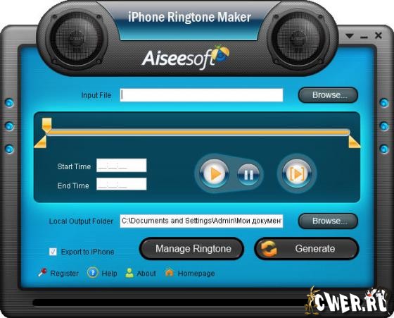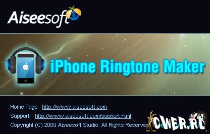Aiseesoft iPhone Ringtone Maker - создание рингтонов из аудио и видео файлов для Apple iPhone, поддержка AVI, MPEG, WMV, MP4, FLV, MKV, H.264/MPEG-4, DivX, XviD, MOV, RM, RMVB, M4V, VOB, ASF, 3GP, 3G2, H.264, QT, MPV и других видео форматов, поддержка MP3, WMA, AAC и других аудио форматов, создание, редактирование и сохранение рингтона в iPhone, iPhone (3G) M4R формате.