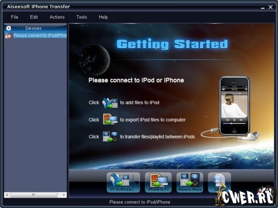 Aiseesoft iPhone Transfer - программа для обмена аудио и видео файлами между компьютером и Apple iPhone, передача аудио и видео файлов с компьютера в iPod или iPhone, передача аудио или видео файлов с iPod или iPhone на компьютер.