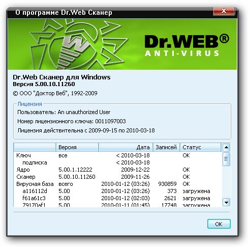 • обновлена вирусная база (по состоянию на 12.01.2010)