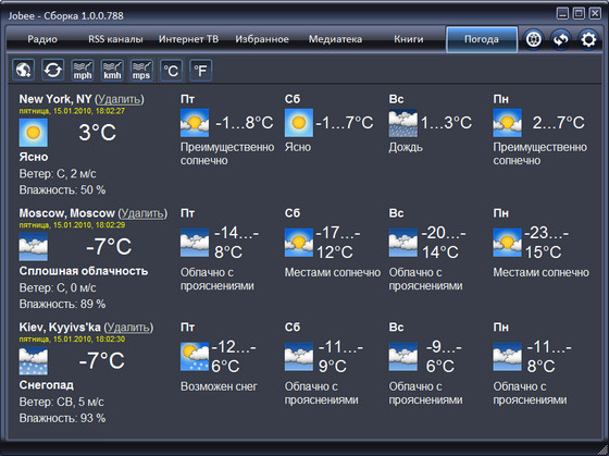 Jobee – это удобный плеер, предназначенный для комфортного прослушивания интернет радиостанций и аудио-подкастов, просмотра интернет-телевидения, чтения RSS-лент. Программа запомнит до какого момента вы прослушали аудио-подкаст или какую последнюю радиостанцию вы слушали. Он сам скачает Вам обновления в RSS-лентах и сообщит об этом нотификатором в правом нижнем углу экрана.