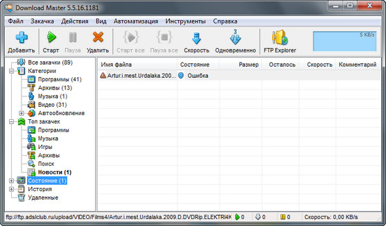 Скачать программу Download Master 5.5.16.1181 + Antibaner (7,23 МБ):