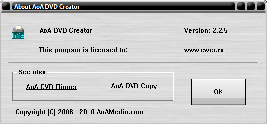 Скачать программу AoA DVD Creator 2.2.5 (9,97 МБ):