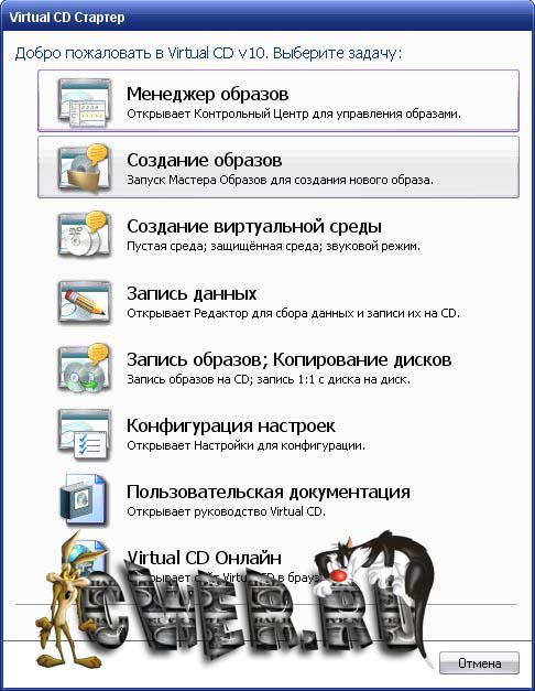 Virtual CD - программа для создания виртуальных компакт-дисков. Допускает создание до 25 виртуальных CD/DVD-приводов и ограниченное только размером свободного места на жестком диске количество образов CD/DVD, которые при необходимости смогут работать одновременно с разными приложениями. Еще одно применение нескольких виртуальных CD-драйвов - установка в них наиболее часто используемых образов компакт-дисков на постоянной основе (в этом случае не нужно будет сначала "вставлять" их в виртуальный CD-драйв, а уж только потом пользоваться). Программа умеет работать с Data / Audio / mixedmode CD, DVD-ROM, non-CSS DVD-Video, Photo-CD и CD-Text.