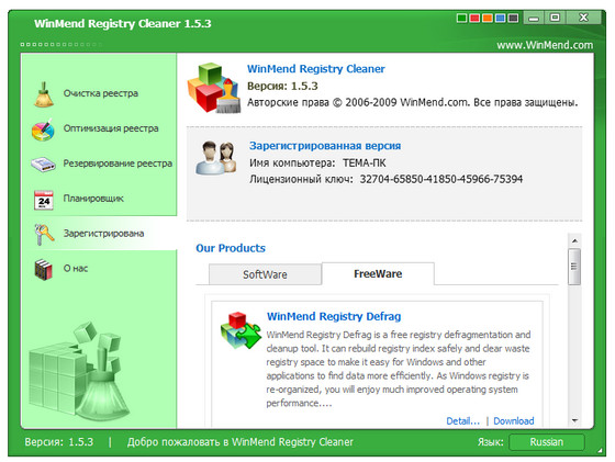 Скачать программу WinMend Registry Cleaner 1.5.3 (2,33 МБ):