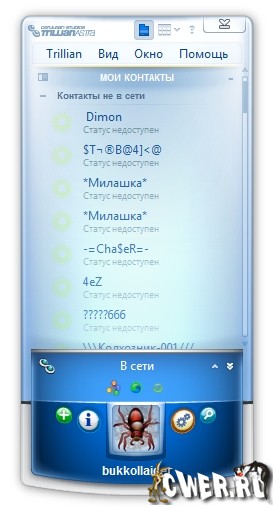 Trillian - универсальный клиент для передачи сообщений через серверы ICQ, AIM, IRC, Yahoo и MSN Messenger. После его установки можно будет обмениваться сообщениями сразу во всех перечисленных сетях без установки самих программ ICQ, AIM и т.д. Доступны такие возможности, как зашифрованный чат (как двухсторонний, так и в режиме конференции), поддержка множественных ICQ/AIM одновременных сессий, мультисерверные соединения, звуковые эффекты, поддержка скинов (через XLM) c возможностью подстройки (вроде прозрачного фона).