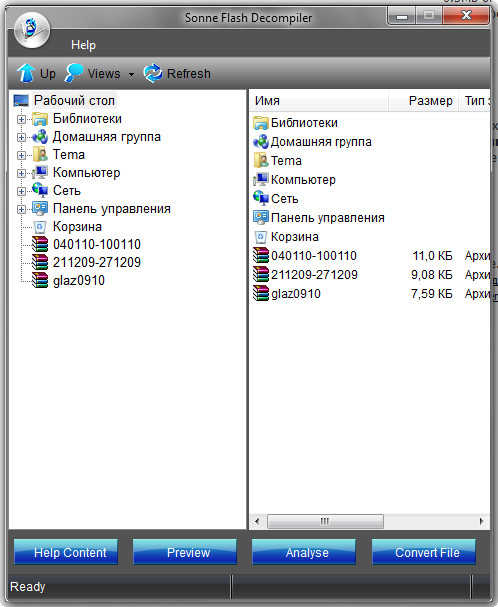 Sonne Flash Decompiler - мощная программа для флеш, позволяющая преобразовывать файлы между форматами SWF и EXE, а также позволяющая редактировать ролики в формате SWF. С помощью данной программы вы сможете редактировать текст, шрифты, картинки, звуки, формы, сценарии и другие элементы, находящиеся в флеш - файле.