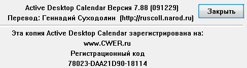 Скачать программу Active Desktop Calendar 7.88 Build 091229 + Rus x32 (5,11 МБ):