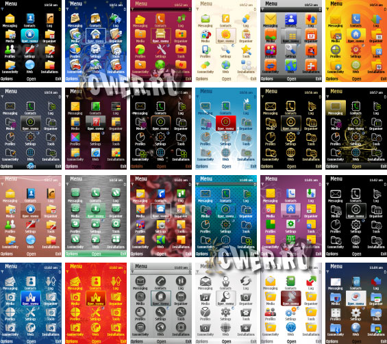 Большинство тем подходит для всех разрешений экранов, некоторые только для 240х320. Количество: 24 штуки.
