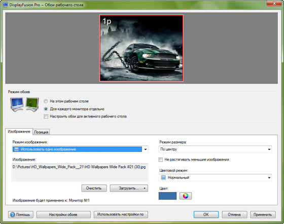 DisplayFusion - небольшая программа для управления обоями рабочего стола, нахождения и установки новых обоев, а также для их смены через указанный промежуток времени. Если у вас многомониторная система, то данная программа поможет вам устанавливать на каждый монитор разные обои по-отдельности - это и является главной особенностью данной программы, ведь стандартными средствами Windows это сделать пока что невозможно.