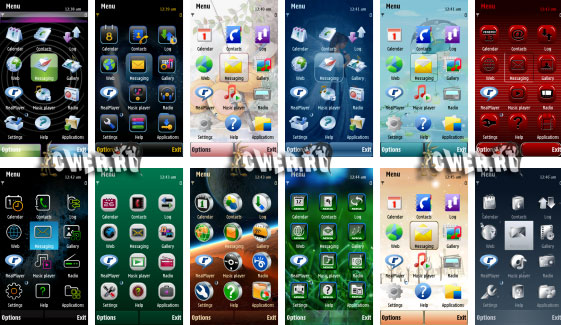 Все темы проверены на эмуляторе Symbian OS с cwer.ws, в котором и сделаны все скриншоты. На превьюшке темы расположены в алфавитном порядке. Некоторые цвета немного искажены, "вживую" темы должны смотреться немного лучше.