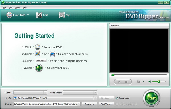 Wondershare DVD Ripper Platinum - удобный в работе и мощный DVD риппер, который может преобразовать кинофильмы DVD во все популярные видео и звуковые форматы, такие как MP4, M4V, AVI, WMV, MOV, 3GP, 3G2, MPEG, FLV, WMA, M4A, MP3, AC3, WMA, ASF, Vob, и т.д. с превосходным качеством и быстрой скоростью. Поддерживает почти все портативные видео/аудиоплейеры, что позволяет Вам легко редактировать DVD к iPod, Zune, iPhone, apple, PSP, Xbox 360, PS3, Archos, iRiver PMP , PMP, MP4/MP3, мобильным телефонам, Карманным PC, PDA, и т.д. Вы можете настроить размер файла, формат файла, и даже объединить несколько видео в 1 файл. С Wondershare DVD Ripper, Вы можете захватить любые картинки от вашего видео DVD и сохранить их как jpeg и bmp файлы.