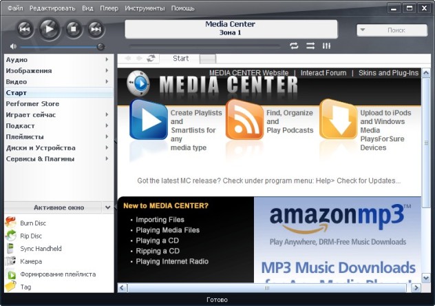 Программа дает возможность организовать коллекцию фотографий, просматривать детальную информацию о каждом файле. Уникальный полноэкранный режим позволяет работать с медиа-коллекцией, управляя ей с экрана монитора или телевизора. Поддерживаются различные пульты дистанционного управления. Media Center поддерживает множество моделей портативных плееров, позволяет синхронизировать медиа-библиотеку с iPod и многими другими устройствами.