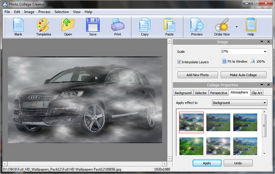 Photo Collage Creator - программа для создания фото коллажей и скрапбуков, которая превращает обычные цифровые фотографии и текст в собственное произведение искусства. Программа сочетает в себе десятки заранее приготовленных шаблонов коллажей, более 50 фото рамок, несколько специальных эффектов и гибкие издательские форматы.
