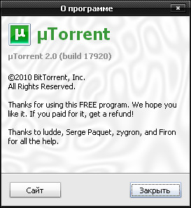 Скачать программу µTorrent 2.0 Build 17920 Final (0,3 МБ):