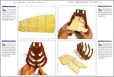 "Великие парусники" — уникальная коллекция журналов, дающая представление об истории парусников начиная с XV века. В номере представлены детали и элементы третьей стадии сборки галеона начала XVII века "Сан-Джованни Батиста". Подробные и четкие инструкции пояснят все особенности и секреты сборки старинного парусника.