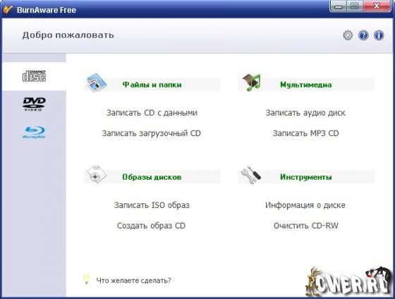 BurnAware Free - относительно небольшая, бесплатная и простая в использовании программа для записи информации и музыкальных композиций на CD, DVD, Blu-Ray и HD-DVD диски, которая пригодится как опытным пользователям, так и новичкам. BurnAware поддерживает работу со всеми типа оптических дисков (включая CD-R/RW, DVD-R/RW, DVD+R/RW, BD-R/RE, HD-DVD-R/RW и DVD-RAM) и аппаратными устройствами записи. Утилита поддерживает создание образов, способна писать мультисессионные диски, имеет опцию проверки записанного содержимого, работает под операционными системами Windows 98/ME/NT/2000/XP/Vista (32/64-bits).