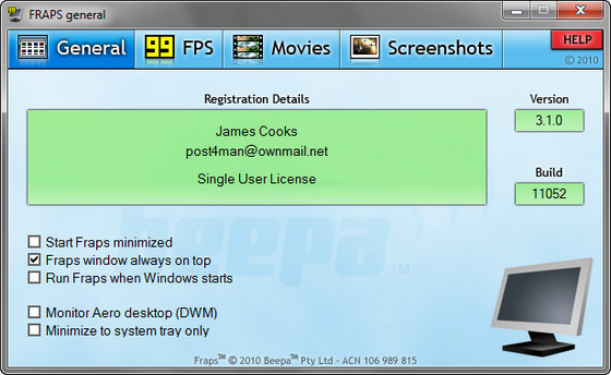 Скачать программу Fraps 3.1.0 Build 11052 (2,32 МБ):