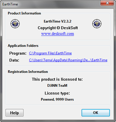 Скачать программу EarthTime 2.3.2 (0,8 МБ):