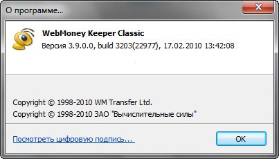 История изменения WebMoney Keeper Classic 3.9.0.0 от 17/02/2010: