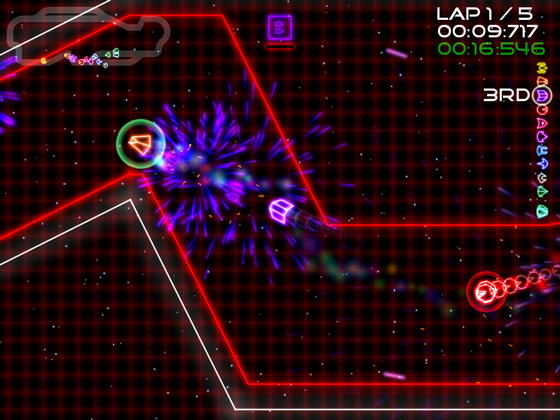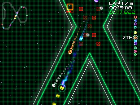 Сумасшедшие гоночные состязания в лазерном оформлении! 3 режима, 12 треков, 12 кораблей, 6 видов оружия и встроенный редактор!