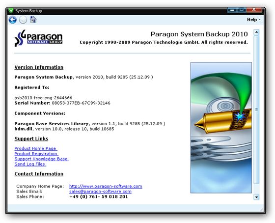 Скачать программу Paragon System Backup 2010 build 9285 (146,12 МБ):