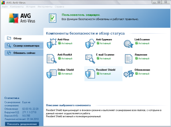 AVG Anti-Virus включает в себя следующие модули: