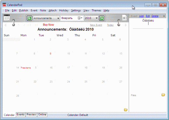 - Supports the FTP protocol of file transfer, that makes it easy to publish your calendars on the internet