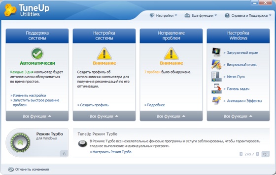 TuneUp Utilities 2010 - новая версия большого набора всевозможных инструментов для настройки и оптимизации системы. При помощи этой программы вы сможете очищать диски от мусора, удалять неверные записи из системного реестра и дефрагментировать его, оптимизировать оперативную память, управлять автозагрузкой, навсегда удалять файлы с диска при помощи специальной утилиты ”TuneUp Shredder” (дальнейшее восстановление становится невозможно даже при помощи специальных программ), восстанавливать удаленные файлы, изменять внешний вид Windows, и многое другое. Все утилиты этого пакета объединены в единую графическую оболочку. Для запуска той или иной утилиты нужно выбрать ее название в списке и кликнуть по ней мышкой. После этого открывается диалоговое окно, в котором и производятся все соответствующие действия. Пакет объединяет в себе важные функции для оптимизации системы, конфигурации, очистки и обслуживания в современном графическом пользовательском интерфейсе.