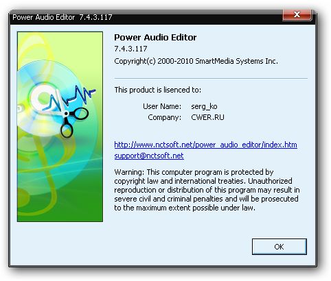 Скачать программу Power Audio Editor 7.4.3.117 (9,68 МБ):