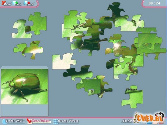 Имеется возможность сохранения и последующей загрузки незаконченных игр, а также несколько дополнительных функций для новичков (просмотр картинки целиком; отображение только фрагментов рамки, что позволяет быстро ее построить, а потом также быстро замостить середину).