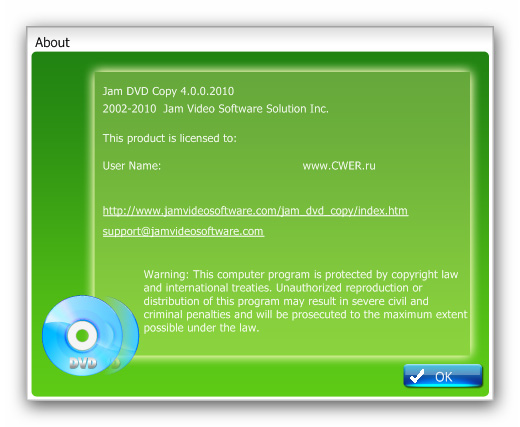 Скачать программу Jam DVD Copy 4.0.0.2010 (33,06 МБ):