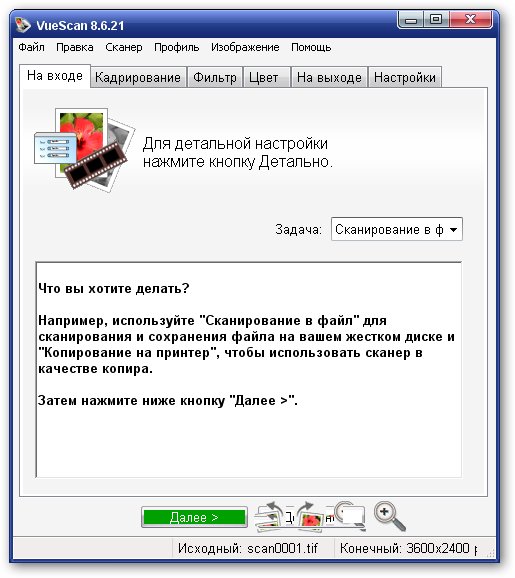 VueScan Pro - программа для работы со сканерами HP, Minolta, Nikon, Polaroid, Epson, Canon и другими. Может работать с внутренней глубиной цвета. VueScan поддерживает автоматическую и ручную настройку большинства параметров и пакетный режим сканирования. Поддерживается более 500 моделей сканеров с определенным перевесом в сторону слайд-сканеров — Nikon, Minolta, Polaroid, Microtek, Epson. Предусмотрено автоматическое удаление дефектов изображения за счет канала инфракрасного сканирования и многопроходное сканирование с последующим усреднением результата — для подавления собственных шумов сканера. Имеются фильтры подавления зерна, нерезкого маскирования и удаления паразитного оттенка оригинала. Есть средства ручной корректировки динамического диапазона и градационной характеристики (независимо по каналам R, G, B).