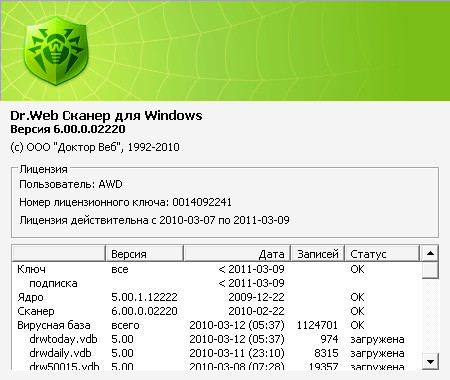 На снимке видно, что ядро осталось старое, попробовал ключик от Васи Пупкина до 03.2011- при обновлении сканер обновился до 5й версии (взад smile ). С легальным ключем такого не происходит.