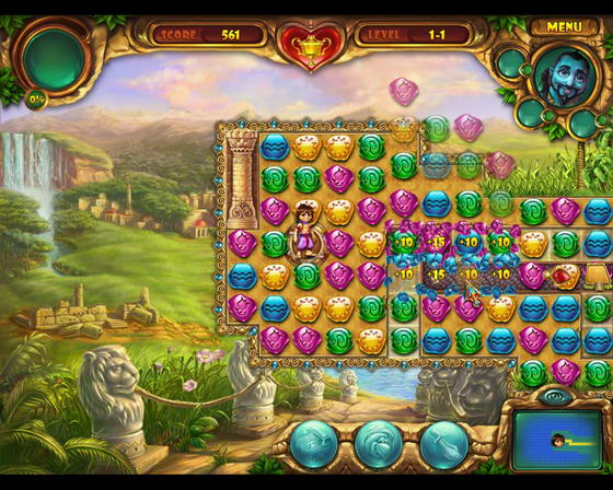 Новая красочная игра, сочетание жанров "три в ряд" и "я ищу" от Big Fish Games и Fenomen Games. Волшебная сказка востока. Воришка Алладин, убегая от стражи случайно оказывается в пещере полной сокровищ, где находит лампу с исполнительным джином. Что же он пожелает? Жениться на принцессе Будур, никак не меньше, но для этого придётся постараться.