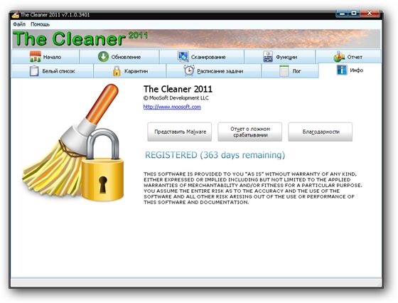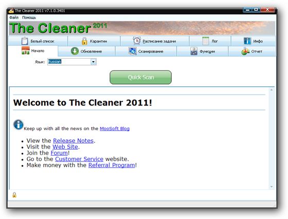 The Cleaner - программа, необходимая для поиска и удаления на вашем компьютере вирусов, троянов, программ-шпионов и различных вредоносных рекламных программ. Включив опцию мониторинга файлов и процессов программа будет всегда следить за всеми программами и процессами на вашем компьютере и при опасных изменениях будет вас информировать, либо сразу удалить их, если файлы будут в опасности. Также имеется зона карантина, проверка компьютера по расписанию, обновление сигнатур через интернет.