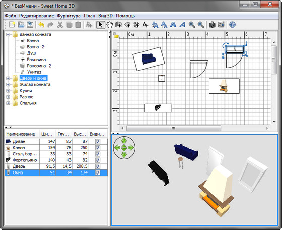 Sweet Home 3D - программа, предназначенная для проектирования интерьера. Sweet Home 3D поможет вам виртуально расставить мебель по комнатам вашего дома, выбирая наиболее удачное расположение элементов интерьера. Во время работы можно использовать 3D-модели, которые в большом количестве представлены на официальном сайте и доступны для бесплатной загрузки. Sweet Home 3D дает возможность предварительного просмотра интерьера в 2D (вид сверху), а также может визуализировать конечный вариант расстановки мебели в 3D.